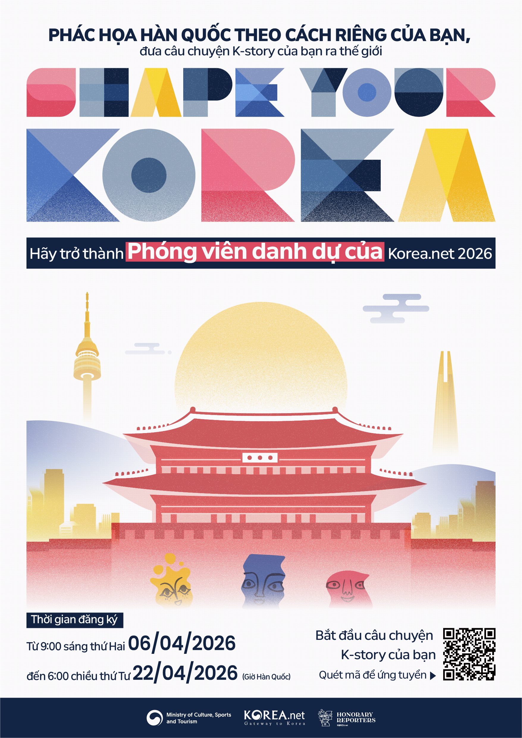 Bộ Văn hóa, Thể thao và Du lịch đang tìm kiếm những Phóng viên danh dự cho Korea.net năm 2026 nhằm đưa hình ảnh Hàn Quốc đến gần hơn với thế giới.